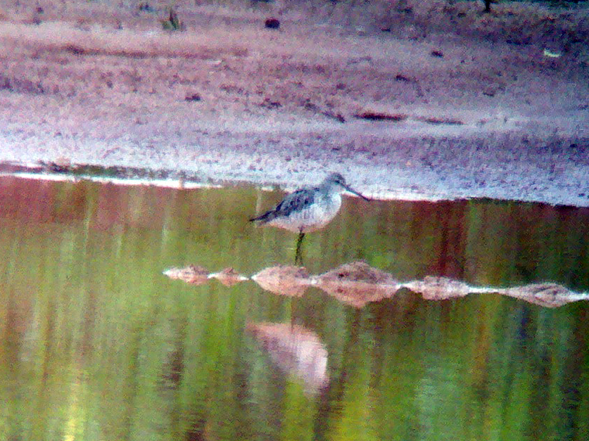 Stilt Sandpiper at Schoolhouse Road construction site, Franklin Township, NJ, Aug. 18, 2012 (digi-phone-scoped by J. Ellerbusch)