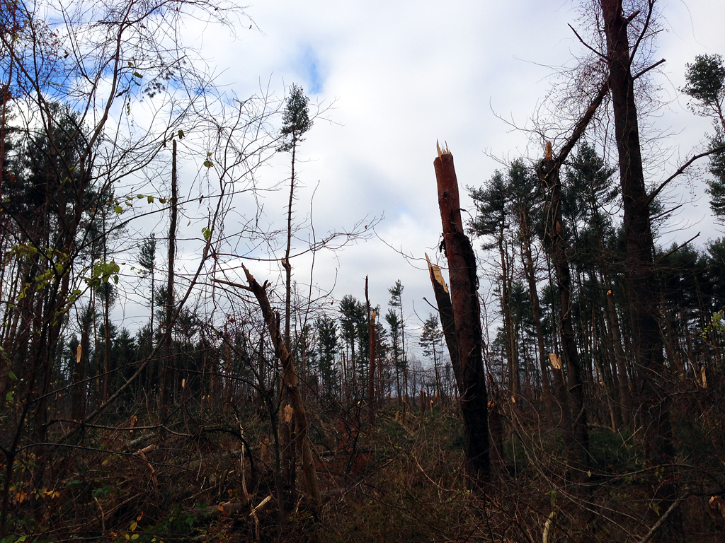 Jonathan’s Woods, Denville Township, Nov 5, 2012 – post Hurricane Sandy. This had been a primarily White Pine grove. Approximately 800 trees were leveled. (Photo by Jonathan Klizas, iPhone 5)