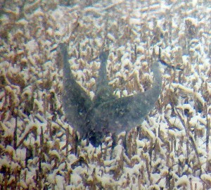 [Editor’s note: this represents the sixth year in a row for Sandhill Cranes in Somerset County at approximately the same time of year. This is a new location, some 10 miles west of the usual Weston Canal, Franklin Township area Sandhill Cranes have been observed in previous years. That is, assuming this is the same family group.]
