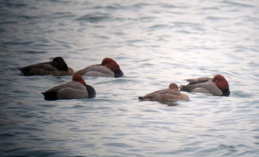 5 of the Redheads at Lake Parsippany, Feb. 22, 2013 (digiscoped by Jonathan Klizas)