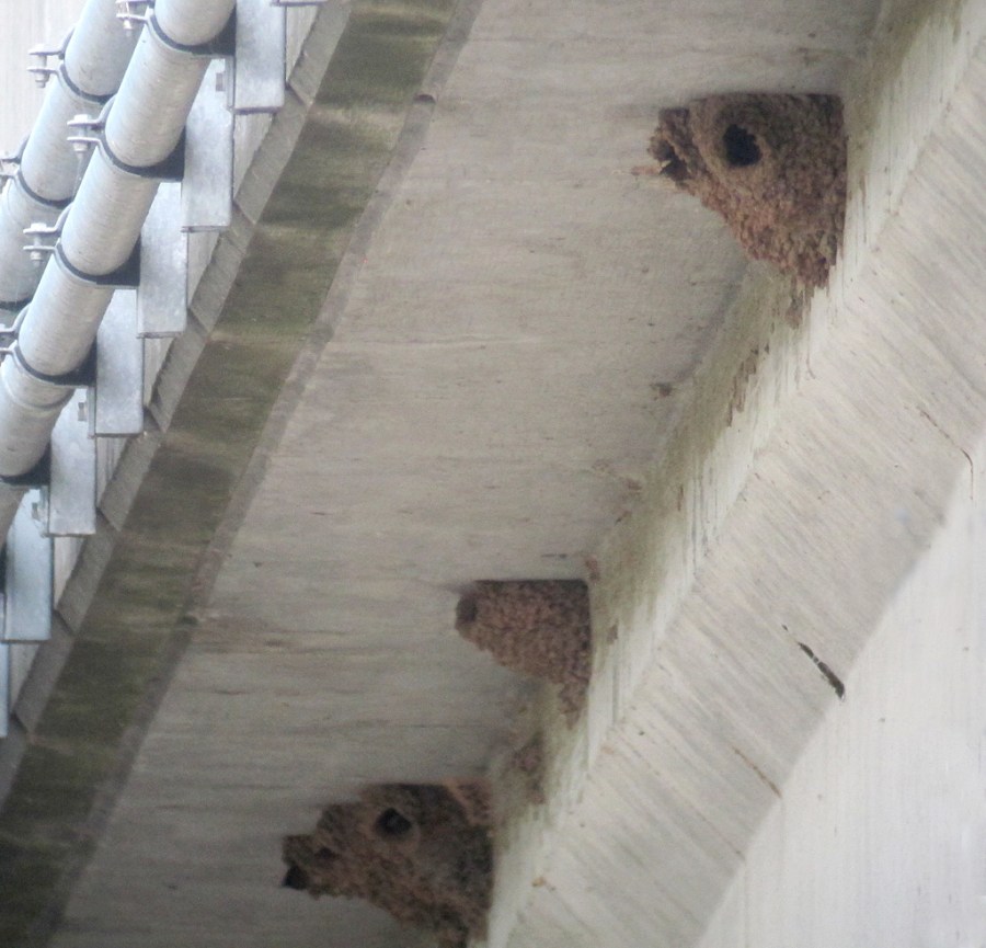 Cliff Swallow Colony, I-287 Bridge, Franklin Twp., NJ, June 19, 2013 (digiscoped by Jonathan Klizas).