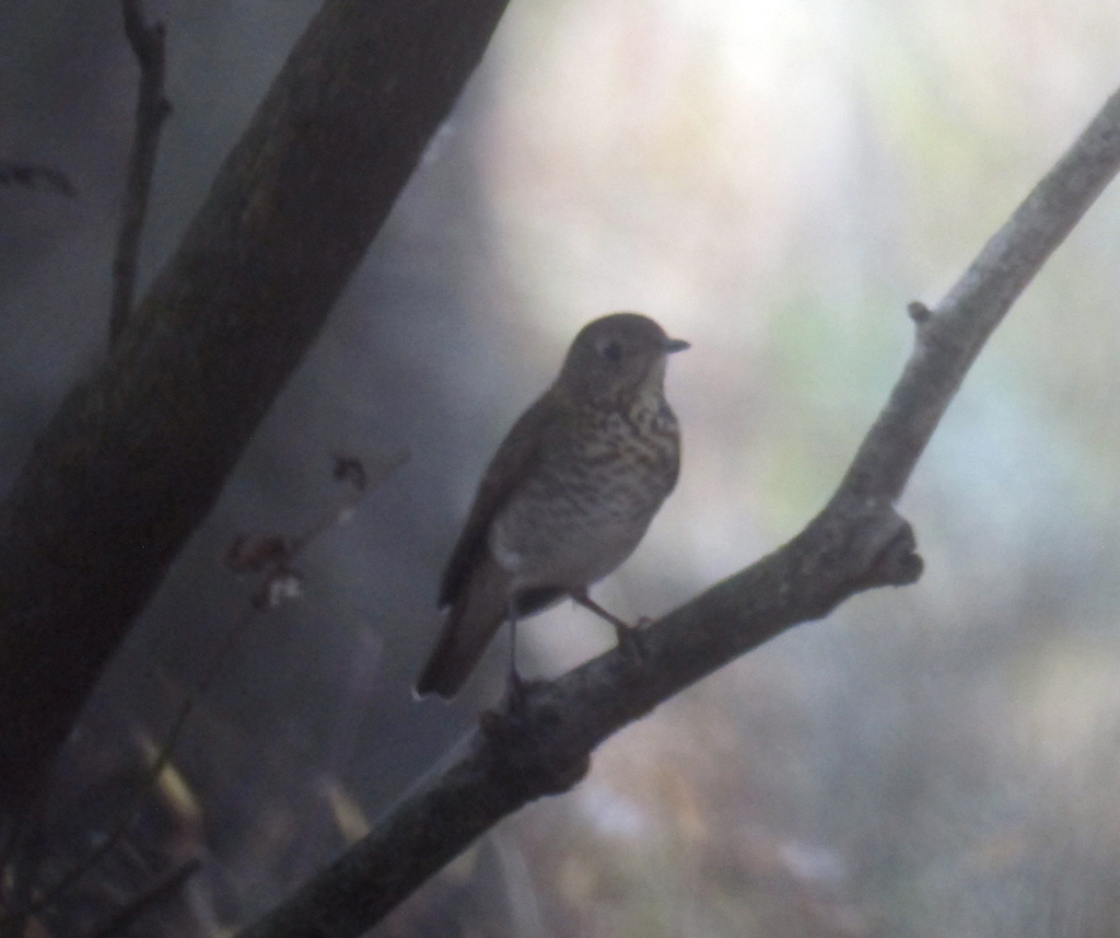 ID photo of a Gray-cheeked Thrush, Troy Meadows, NJ, Oct. 5, 2013 (digiscoped by Jonathan Klizas).