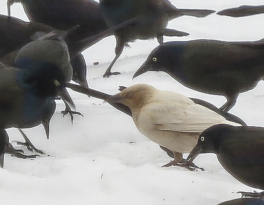 Common and not-so-common Grackles, Lincoln Park, NJ, Mar. 2, 2014 (photo by Jill Homcy).