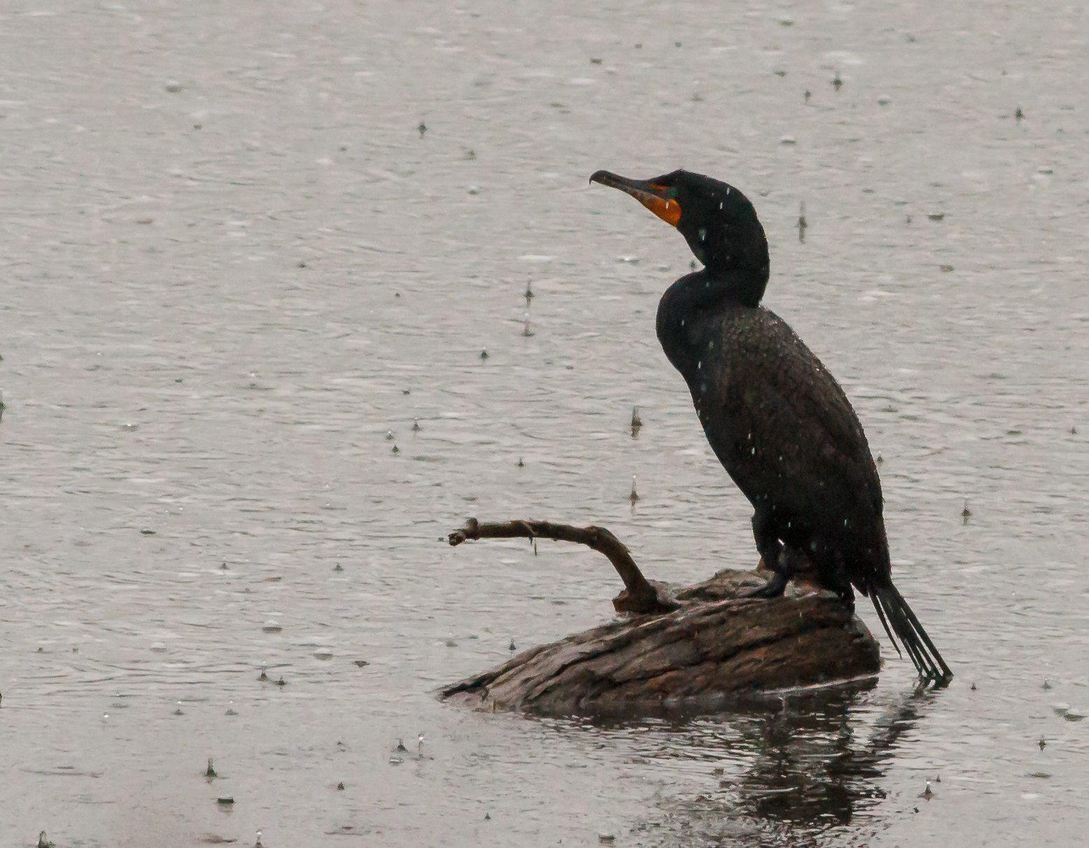 Double-crested Cormorant and rain, Boonton Reservoir, NJ, Mar. 12, 2014 (photo by J. Klizas)