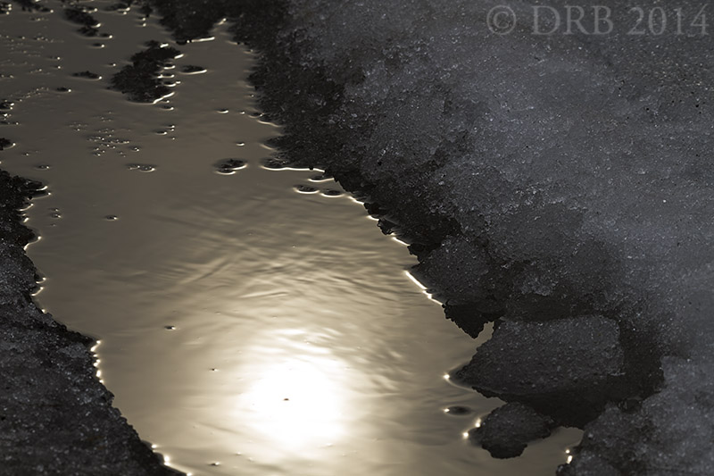 Winter Sun Reflected in Tire Track (Troy Meadows nature photos by Dave Blinder using his Tamron lenses).