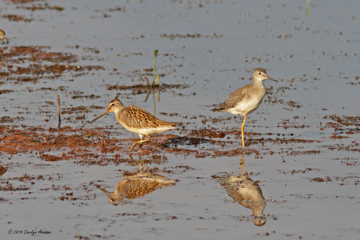 Short-billed Dowitcher, Lesser Yellowlegs, Negri-Nepote Grasslands, NJ, Aug. 14, 2014 (photo by Carolyn Arnesen)