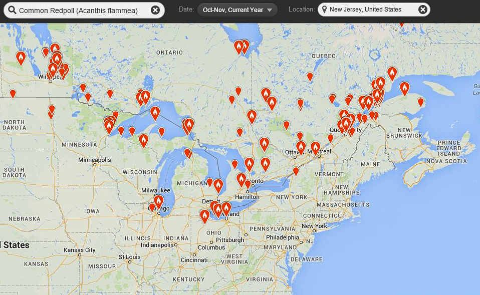 Here is an eBird range map showing Common Redpoll’s current locations from October through today showing them along the St. Lawrence River and scattered around the Great Lakes:
