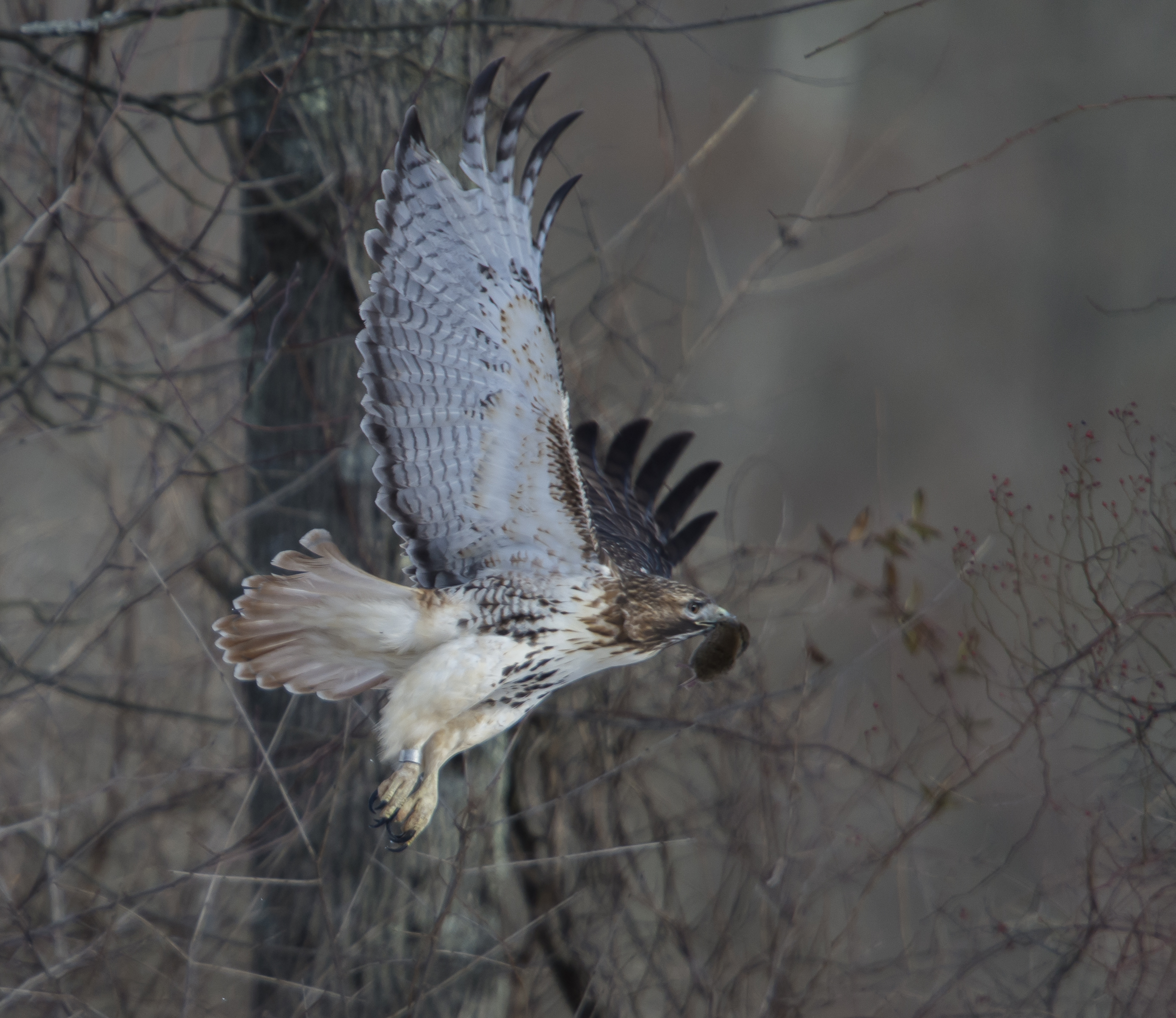 Banded Red-tailed Hawk, Great Swamp NWR, NJ, Jan. 25, 2015 (photo by Chuck Hantis)