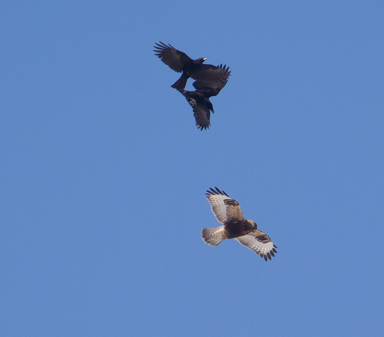 Rough-legged Hawk and Am. Crows, Franklin Twp., NJ, Feb. 11, 2015 (photo by Chris Duffek)