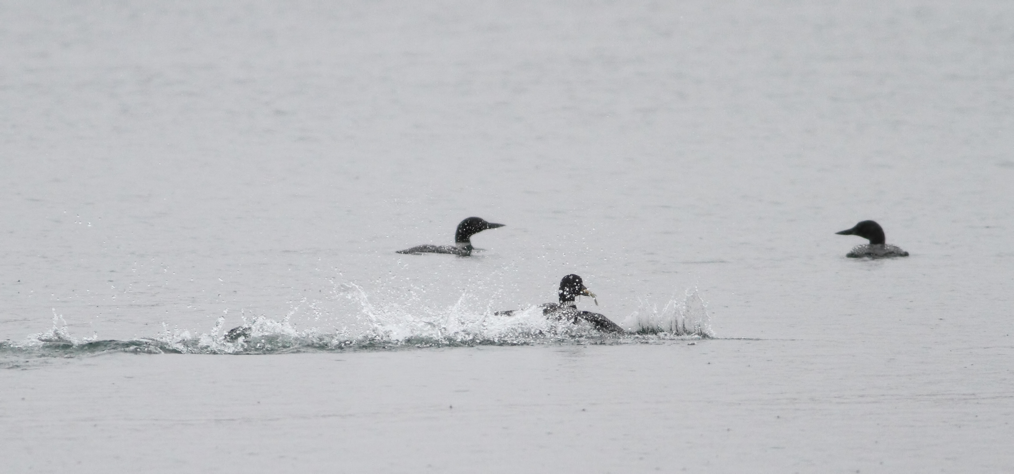 A Common Loon charges across the water after snagging a fish, Lake Parsippany, Mar. 31, 2015 (photo by Jonathan Klizas)