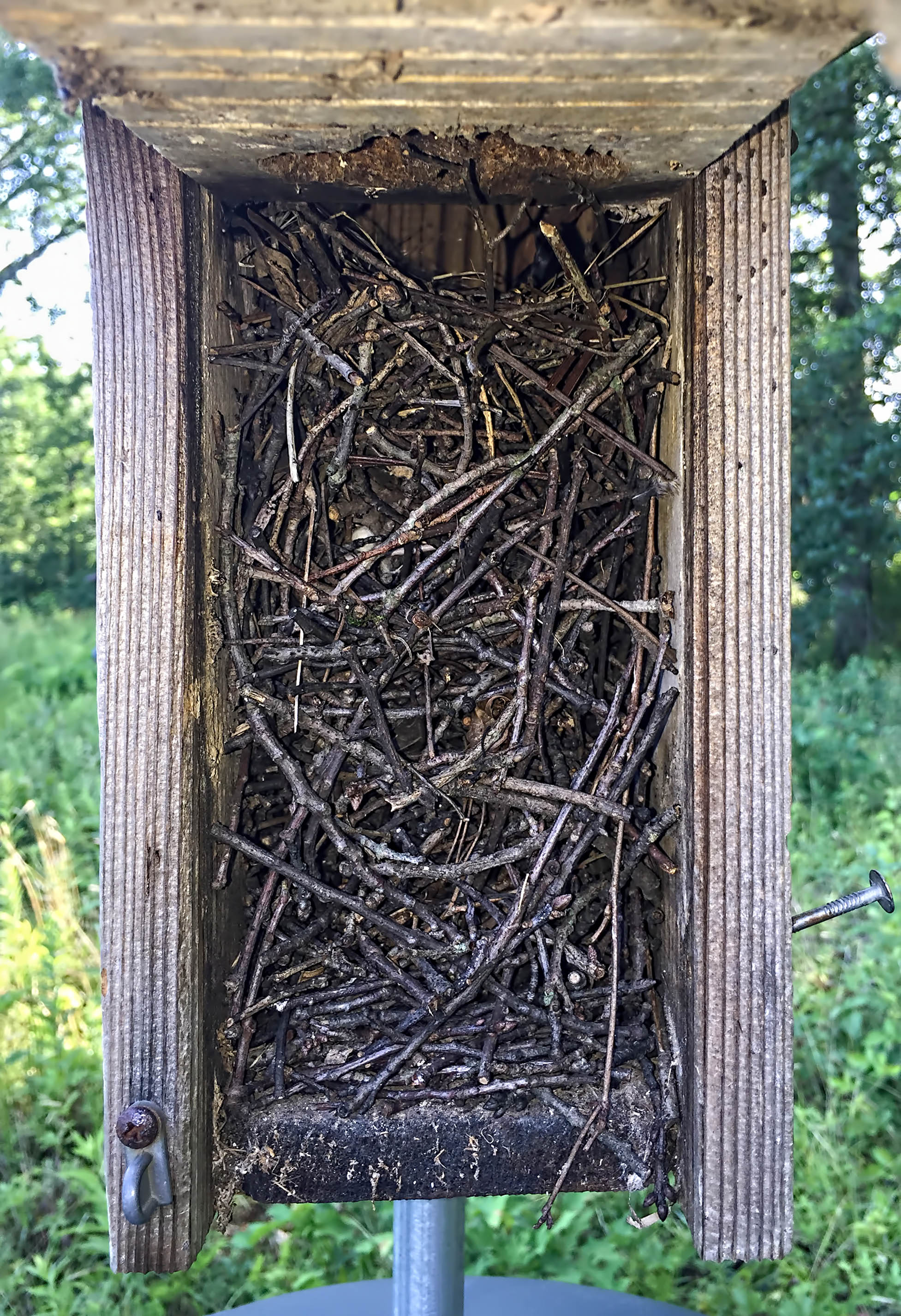 House Wren nest, Great Swamp NWR, July 10, 2015 (iPhone photo by Jonathan Klizas)