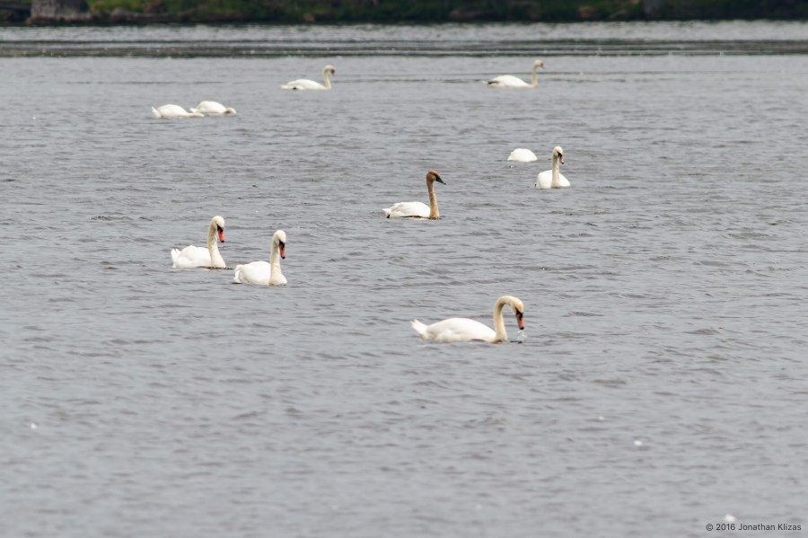 Trumpeter and Mute Swans, Lake Musconetcong, NJ, June 11, 2016 (photo by Jonathan Klizas)