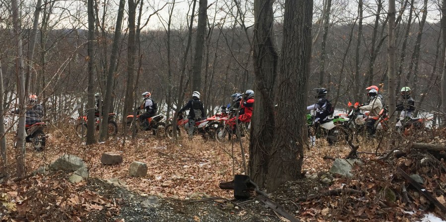Not-so-Easy-Riders on the trail at Timberbrook Lake, NJ, Nov. 24, 2016 (iPhone photo by Jonathan Klizas)