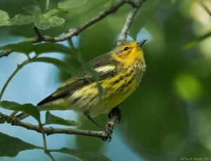 Below is a pair of Chuck Hantis’s photos of a Cape May Warbler found at Troy Meadows on Sep. 1, not far from where the White Ibis was first seen today. Please click on the photos for a larger image. It is worth it.