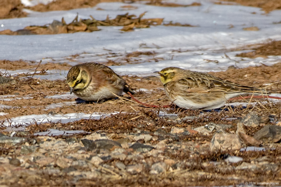 Horned Larks, Florham Park, NJ, Jan. 7, 2018 (photo by Jonathan Klizas)