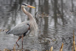 Migration for some, breeding time for others. The following spectacular Great Blue Heron photo is courtesy of Mike Newlon. Click on the photo for a larger image.