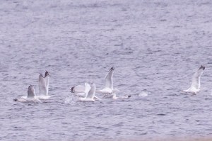 4 Red-throated Loons, approximately 30 Common Loons, 3 Long-tailed Ducks, Horned Grebe, the continuing 2 Red-necked Grebes, at least 6 Red-breasted Mergansers, Tree and Northern Rough-winged Swallows, Eastern Phoebes, Golden-crowned Kinglets in the woods with Yellow-rumped Warblers, and an adult Iceland Gull found by Simon Lane at the south end of the reservoir viewed from Waterview Plaza on Route 46 East. Also seen by Simon was a migrating light morph Rough-legged Hawk.