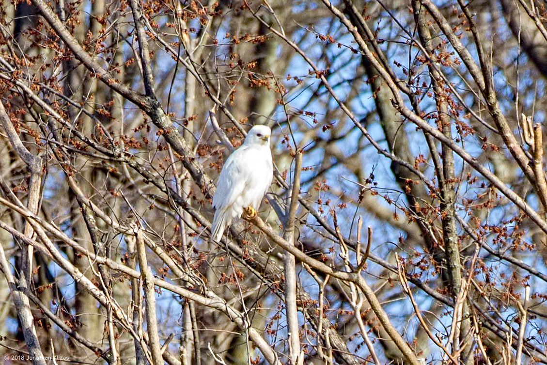 Leucistic Red-tailed Hawk, Morris Co., NJ, Apri. 8, 2018 (photo by Jonathan Klizas)