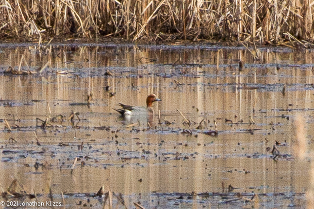 A drake Eurasian Wigeon showed briefly at Troy Meadows this afternoon before flying off with a group of American Black Ducks towards the south. See the distant heavily cropped photo above.